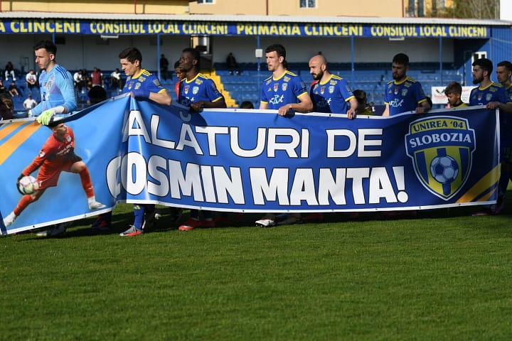 De altfel, și echipa de seniori și-a arătat susținerea pentru Cosmin Manta printr-un banner afișat înaintea meciului cu UTA, disputat duminică la Clinceni.
