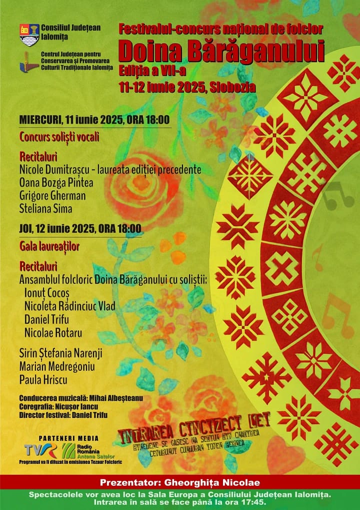 Singura veste care a umbrit ediția 2025 a festivalului-concurs este aceea că starea de sănătate nu-i va mai permite îndrăgitului mesager al folclorului ialomițean, Nicolae Rotaru, să susțină recitalul așteptat de publicul de la Slobozia.
