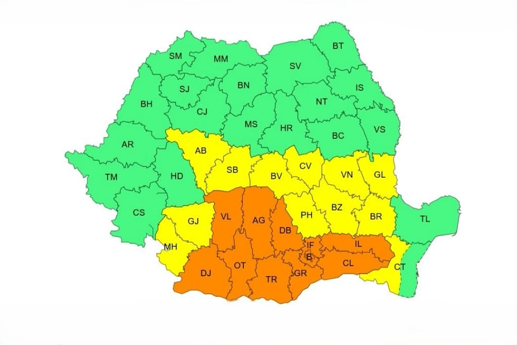 La ora 10.00 intră în vigoare pentru 24 de ore un nou cod portocaliu de vreme nefavorabilă. În intervalul de incidență a noii alerte emisă de specialiștii ANM valul de căldură care s-a manifestat joi se va intensifica și va determina caniculă și disconfort termic accentuat.