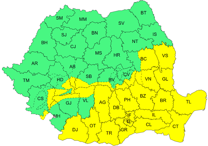 Așa cum se anticipa încă de la sfârșitul săptămânii trecute, specialiștii Administrației Naționale de Meteorologie au emis luni dimineață două alerte de interes pentru locuitorii din sud-estul și sudul României.