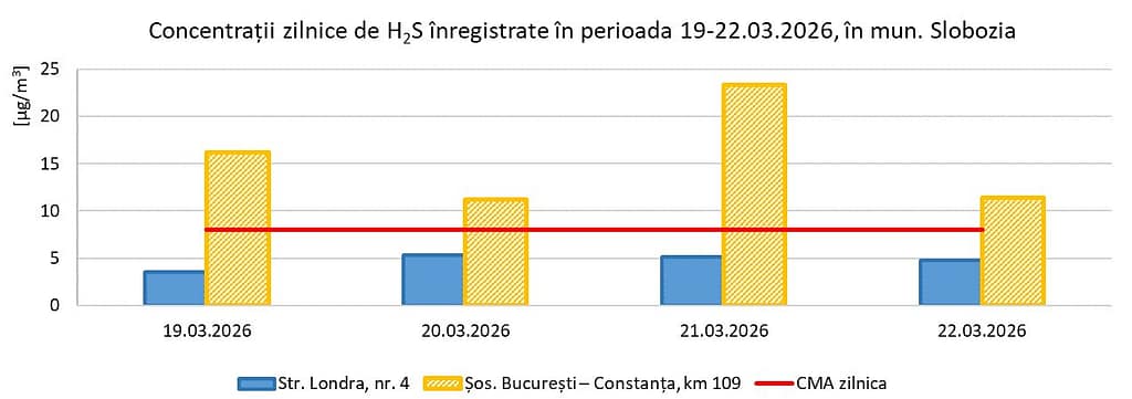 În urma analizei comparative a valorilor măsurate pentru compusul hidrogen sulfurat, începând cu data de 19.03.2026 s-a constatat că: