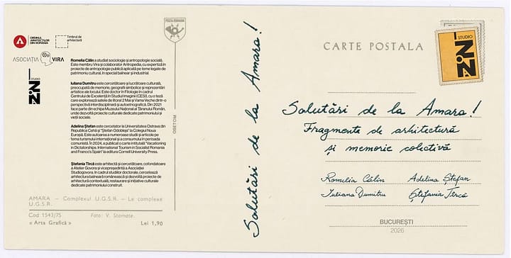 Volumul ,,Salutări de la Amara!-Fragmente de arhitectură și memorie colectivă” este coordonat de Asociația VIRA și publicat de Studio Zona, cu susținerea necondiționată a Ordinului Arhitecților din România.